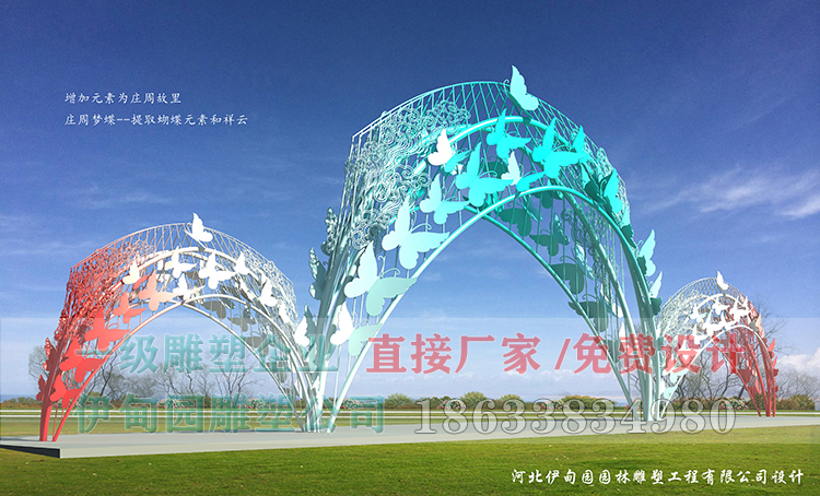 大門(mén)不銹鋼雕塑制作流程:設計圖紙→骨架放大→板材鍛造→整形修復→焊接成型→環(huán)氧底漆→氟碳面漆→分節運輸→工地安裝。