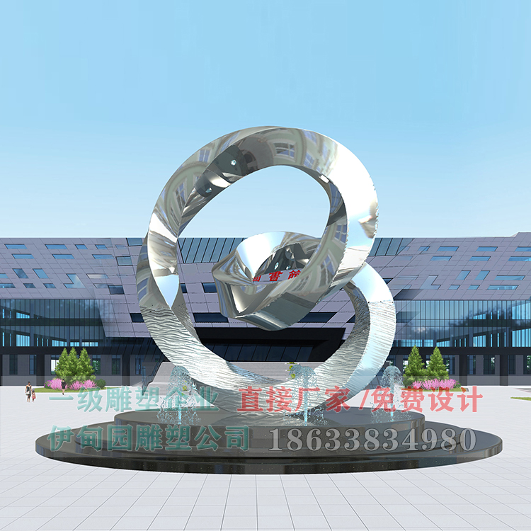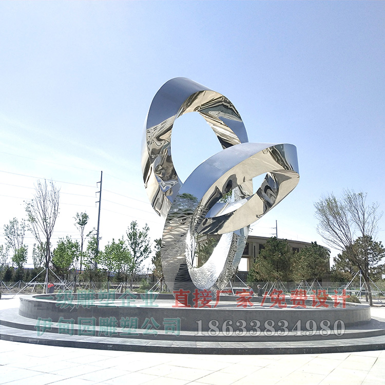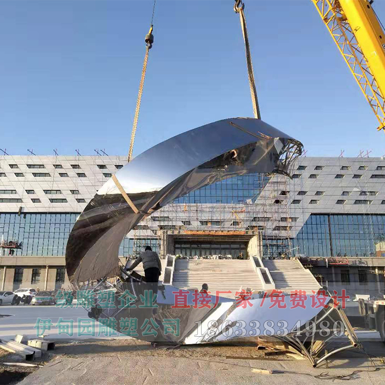 水紋鏡面不銹鋼雕塑,11米,寬9米,安裝于吉林省某學(xué)校。雕塑從設計→訂制小樣→主體制作→物流運輸→現場(chǎng)安裝→細節處理,共歷時(shí)3個(gè)月。不銹鋼雕塑主骨架采用219*6mm鍍鋅鋼管制作,防腐性能好、牢固穩定!所有承重骨架采用雙面滿(mǎn)焊,整體骨架完成后用防銹漆滿(mǎn)涂三遍。雕塑外輪廓為抽象e造型,外部裝飾板采用304#鋼板,緊貼著(zhù)骨架外形進(jìn)行拼裝,焊接。