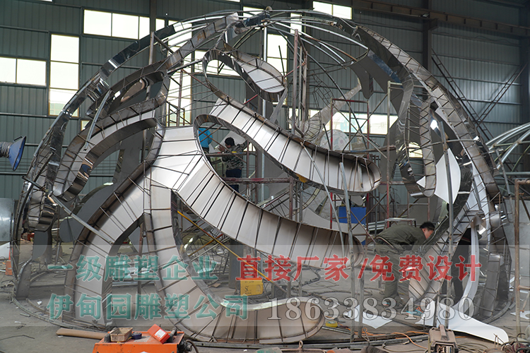 雕塑流程:建模渲染,施工圖紙繪制,3D小稿打?。ū阌诤笃谑┕φ眨?,裁板焊接,鏡面拋光,運輸安裝,細節整形,驗收合格。