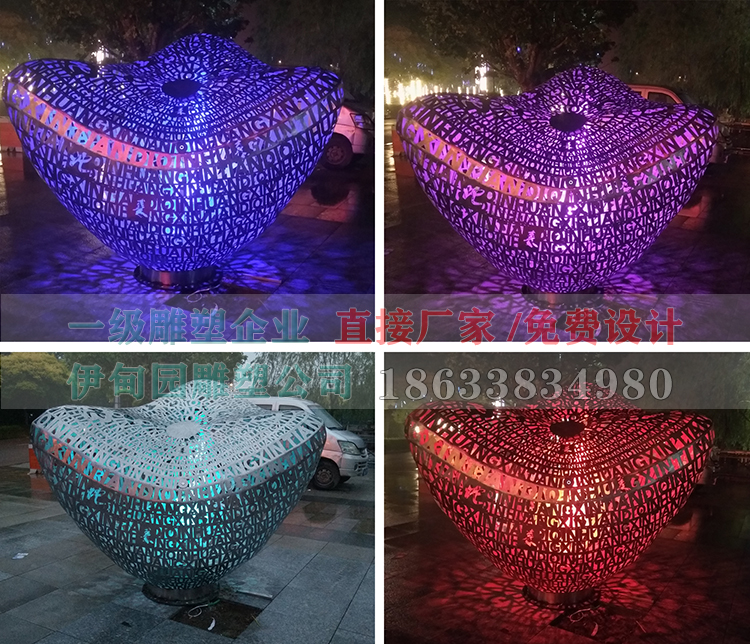 漫想雕塑一大特點(diǎn)是加入了“彩虹燈光”效果,七種顏色自由變換,程序開(kāi)關(guān)認為控制變色,增加人與雕塑的互動(dòng)樂(lè )趣。
