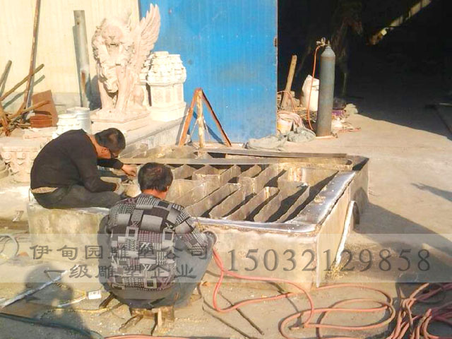 第六步:脫模后去掉分塊模具上的殘留泥,完畢后對石膏模進(jìn)行細致修模、補模,然后用金屬銅網(wǎng)進(jìn)行打磨。