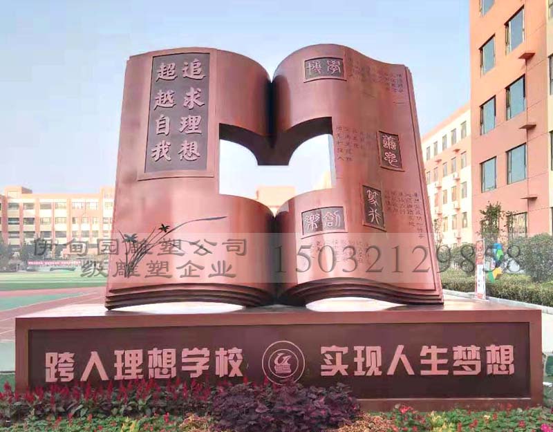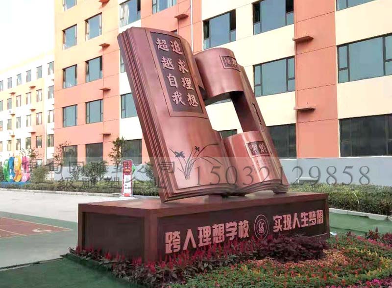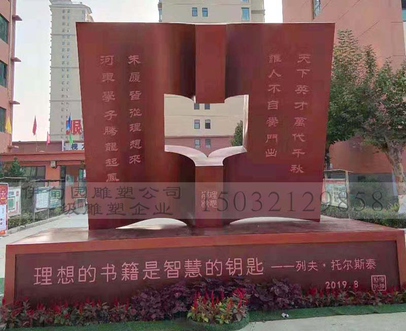 不銹鋼書(shū)雕塑作為學(xué)校主題雕塑,得到學(xué)校領(lǐng)導一致認可。校園里邊的書(shū)雕塑象征力耕不息、勇于開(kāi)拓創(chuàng )新、自強不息精神等寓意,在濃厚的文化氣息中無(wú)疑不是錦上添花之筆。