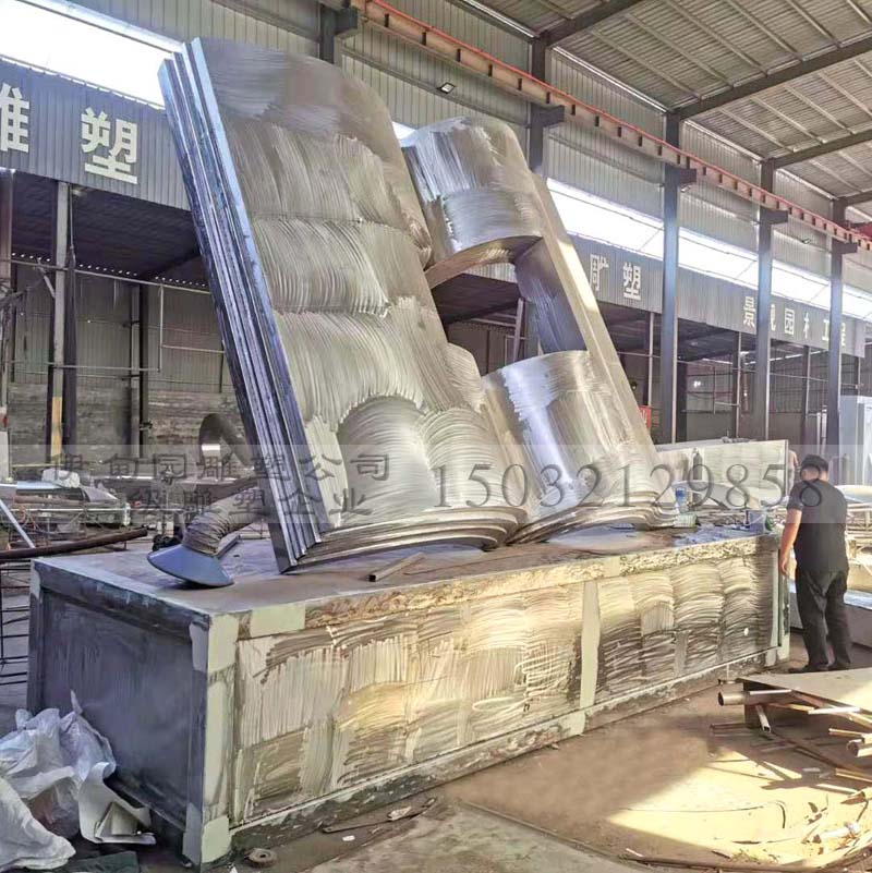 不銹鋼書(shū)雕塑,3米 寬3.6米,安裝山西省某學(xué)校。書(shū)雕塑正面及背面雕刻辦學(xué)理念及特色,方形底座四周雕刻名人警句。