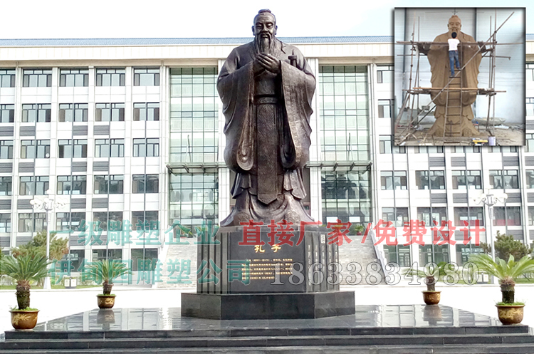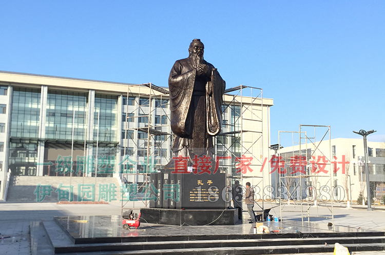 高8.8米孔子銅像雕塑安裝于吉林省某校園內,孔子銅像制作流程:確認雕塑圖案一塑制泥塑模型一翻制模具(硅膠模具)一根據雕塑模型采取精鑄一翻制一烤制型殼脫蠟一燒制型殼一澆鑄銅水一待銅水冷卻后打碎型殼完成銅品制作一著(zhù)色、防腐處理一客戶(hù)驗收。