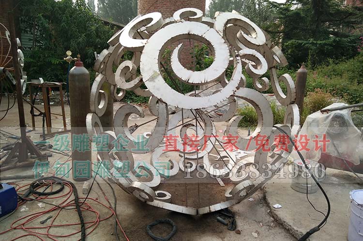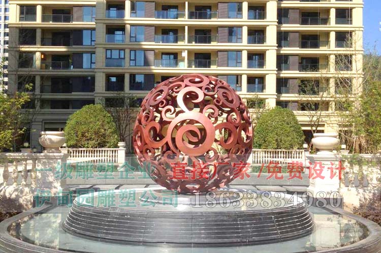 直徑2.1米不銹鋼仿銅鏤空球雕塑,安裝于浙江省某小區內。