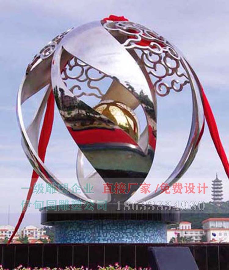 不銹鋼鏤空球雕塑適用于公司大樓、園林景觀(guān)及廣場(chǎng)景觀(guān)等公共空間,景觀(guān)球雕塑不僅能滿(mǎn)足人們的審美需要, 提高人的精神素質(zhì), 它更能深入公眾生活, 引導公眾文化, 充分體現以“人文”的作用。